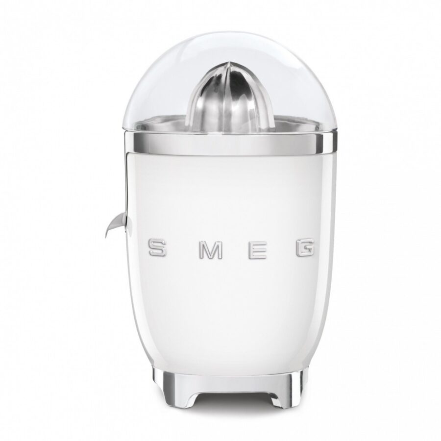 A top of the range citrus juicer from Smeg. A 70 w motor with integrated on-off sensor, completed by a juice collection tray and an anti-drip spout that allows you to stop the juice from flowing out, thus avoiding dirtying the kitchen top.